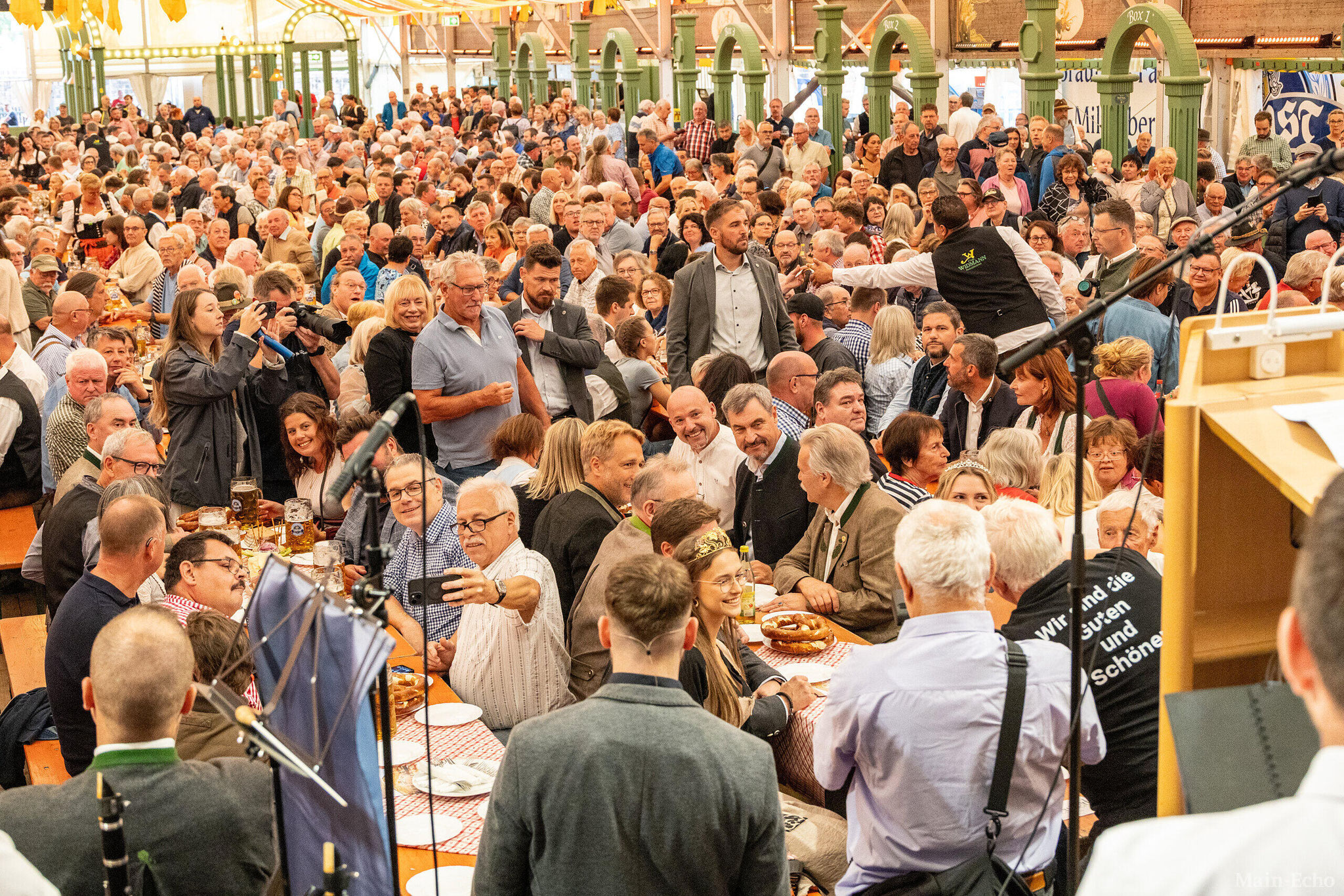 Kaltgetränken in der Nähe des Weissersteiner Höhenwegs / Weibersbrunn. Bereits zu Beginn fand unter den Gästen, allen voran Staatsminister Hubert Aiwanger, Mitarbeitern des Forstbetriebes und des